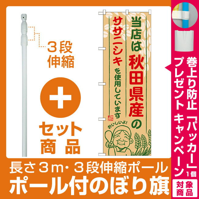 【プレゼント付】【セット商品】3m・3段伸縮のぼりポール(竿)付 ご当地のぼり旗 秋田県産 内容:ササニシキ (SNB-889)