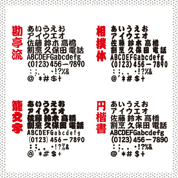 ▼紐の色をお選びください▼ ▼書体をお選びください▼ 下記以外の希望フォントがある場合、具体的なフォント名を お問い合わせいただければ刻印可能かお調べいたします。