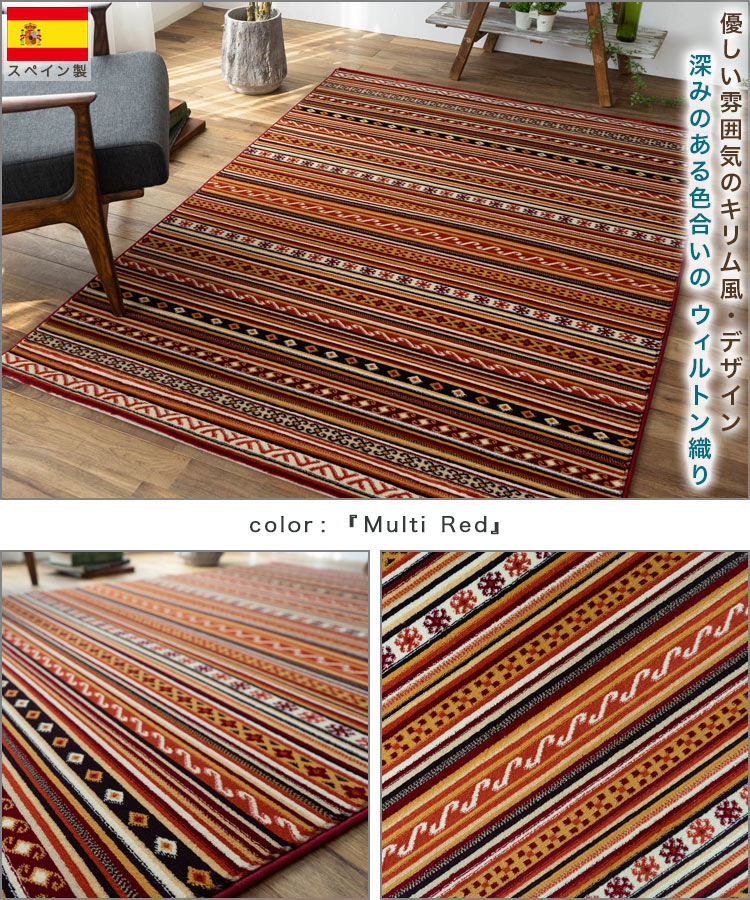 ラグ エスニック 風 絨毯 ウィルトン織 アンティーク 感 130×190 スペイン絨毯 じゅうたん マルチ レッド 1.5畳 ラグマット 北欧 おしゃれ アクセントラグ 長方形 リビング