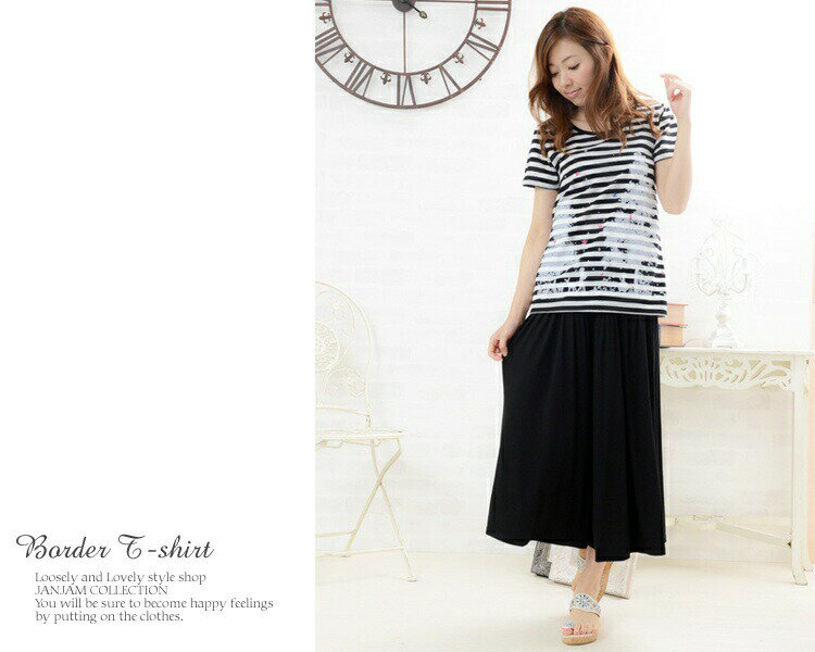 大きいサイズ レディース トップス Tシャツ カットソー ボーダー柄 M LL 3L 4L 5L ボーダーTシャツ メルヘン プリントTシャツ Aライン カットソー 半袖 M LL 3L 4L 5L 9号 13号 15号 17号 19号 pm-ss-tp0039ベーシックなシルエットのボーダーTシャツ!可愛いメルヘンプリントがアクセントになり1枚でもポイントになるアイテム■商品概要■ ■品番pm-ss-tp0039 ■カラーブラック×ホワイト ■サイズM:着丈61 バスト84 肩幅35 袖丈17 脇周38 袖口周30 裾周100LL(XL):着丈65 バスト96 肩幅37 袖丈18 脇周42 袖口周34 裾周1123L(XXL):着丈68 バスト102 肩幅38 袖丈18.5 脇周44 袖口周36 裾周1184L(XXXL):着丈71 バスト108 肩幅39 袖丈19 脇周46 袖口周38 裾周1245L(XXXXL):着丈74 バスト114 肩幅40 袖丈19.5 脇周48 袖口周40 裾周130 ■素材ポリエステル65%、綿35% ■お届け【即納】1-2営業日■素材について■ ■伸縮性少し伸びる ■厚み普通 ■硬さ普通 ■裏地なし■注意事項■★